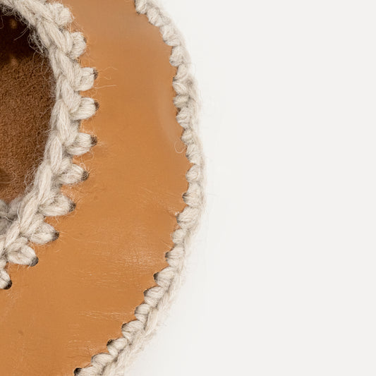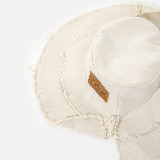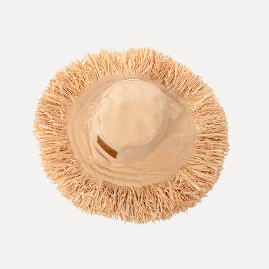 Urros - reversible hat in dyed canvas and hand-embroidered raffia